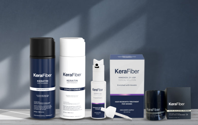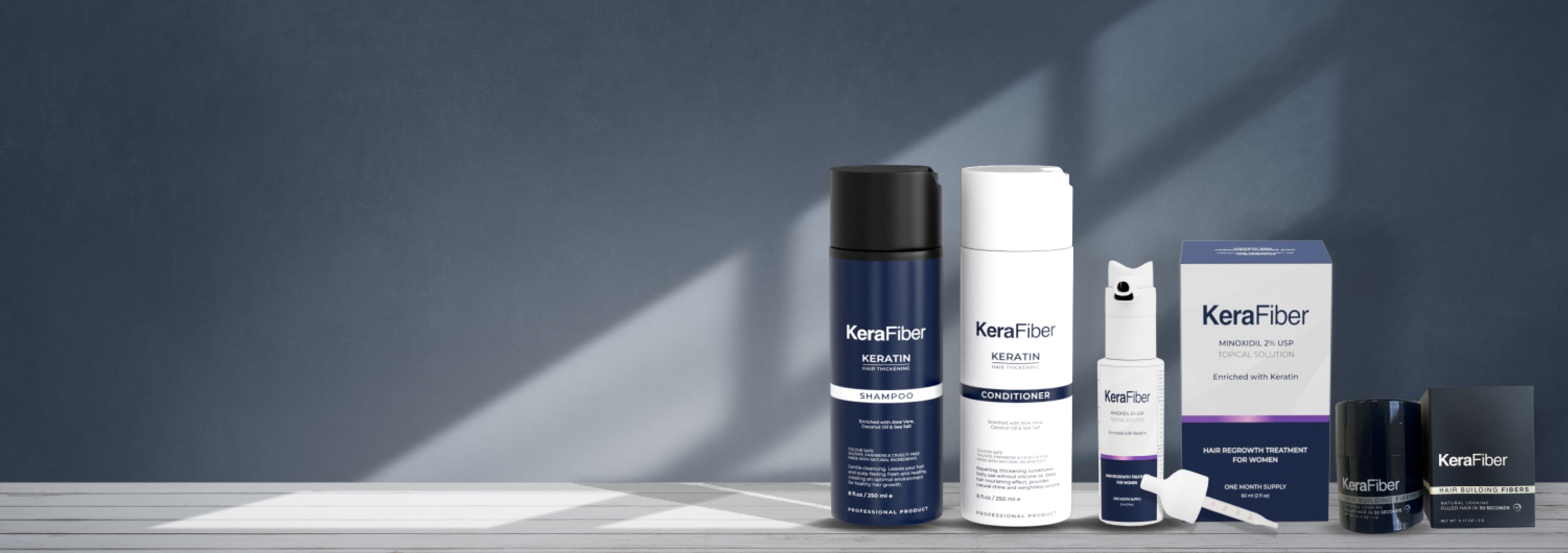KeraFiber Hair Growth Treatment formulated with the only FDA-approved hair regrowth ingredient and proven to help hair loss in 8/10 women.